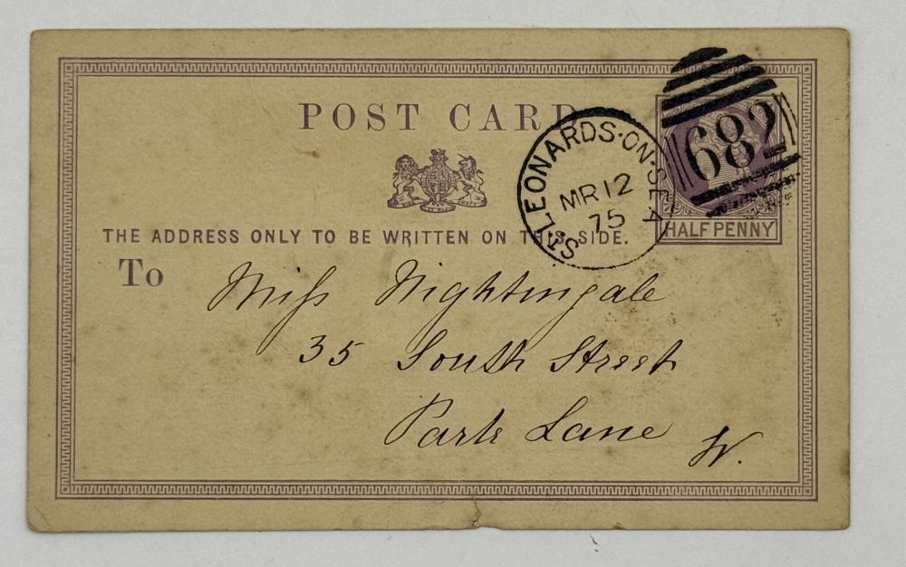 Important Autograph Note to 'Florence Nightingale' from 'Florence Sarah Lees' dated March 12 1875. On one side of a postcard, the reverse addressed to Miss Nightingale, 35 South Street, Park Lane, W.... [More]