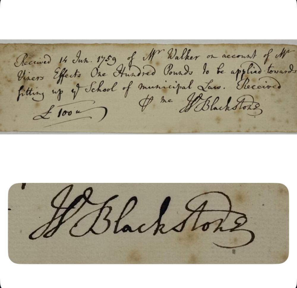 BLACKSTONE, William - Signed Manuscript Receipt - Dated 1759