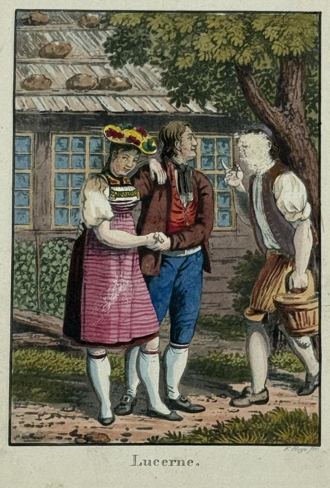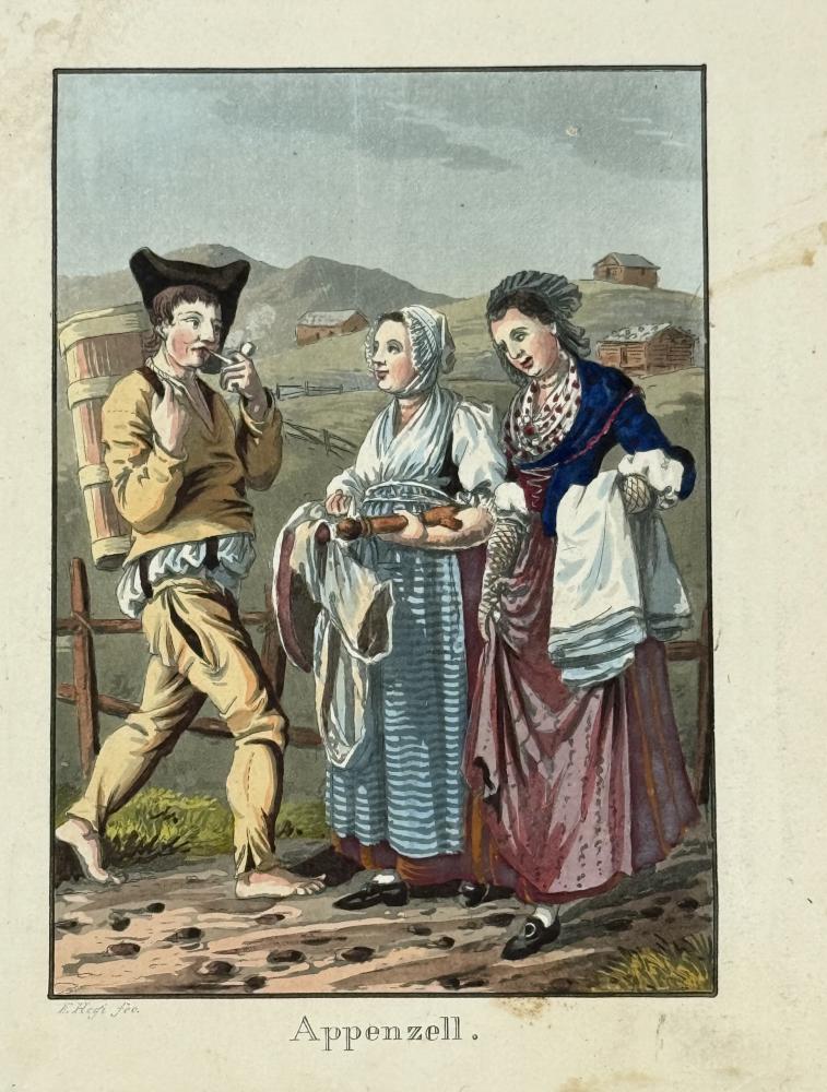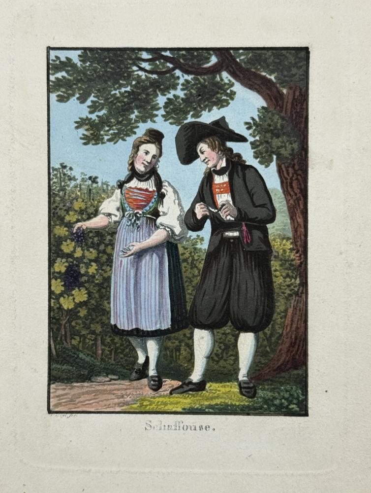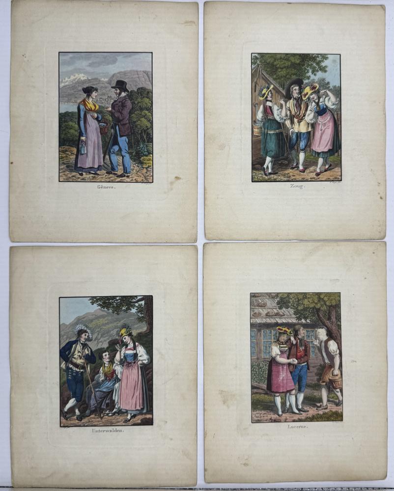| HEGI, Franz - SWISS Collection of Hand Colour Costume Plates - Circa 1820 WPLJ0115 .jpeg) Click image to enlarge  .jpeg) .jpeg) .jpeg) .jpeg) .jpeg) .jpeg) .jpeg) .jpeg) .jpeg) .jpeg) .jpeg) .jpeg) .jpeg) .jpeg) .jpeg) .jpeg) .jpeg) Portfolio of original prints of Swiss Costumes of the Cantons, comprising etched title page with hand coloured vignette. DESCRIPTION: Sammlung von Scheizertrachlen. Collection de Costumes Suisses. Zurich, Dickenmann Mahler, circa 1820.  SIZE: 100 x 70 mm CONDITION: spine rubbed, corners a little worn, the plates with occasional light marginal spotting or stains, one plate torn into the image and one image containing surface damage to a face otherwise in good and bright state. £875.00 Have a Question?You need to be Signed In to ask questions. |