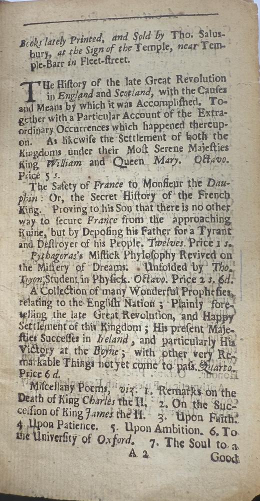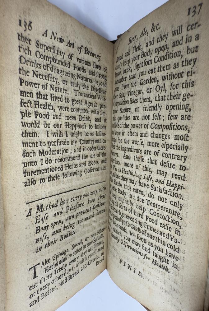 CGS0217 ![]() Click image to enlarge ![]() ![]() ![]() ![]() ![]() ![]() ![]() ![]() ![]() A New Art of Brewing Beer, Ale, and other sorts of Liquors; so as to render them more healthful to the body, and agreeable to nature; and to keep them longer from souring with less trouble and charge than generally practiced,.. by Thomas Tryon DESCRIPTION: London, printed for Tho. Salusbury, at the sign of the Temple near Temple-Bar in Fleet-street, 1691. Duodecimo, [6], 137, [1]. SIZE: TBC CONDITION: Binding neatly rebacked at some point, Corners of binding restored, tiny bit of minor surface wear at joints without any cracking, lightly browned internally however a very good, sound and clean copy. £2200.00 Have a Question?You need to be Signed In to ask questions. |