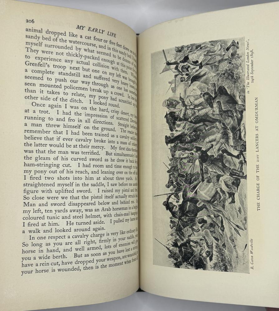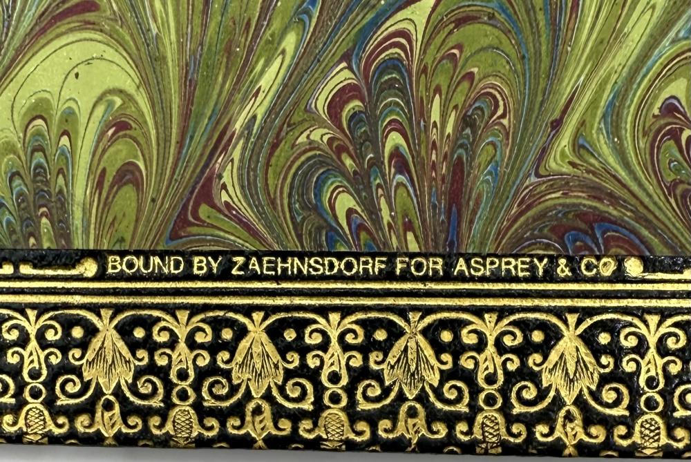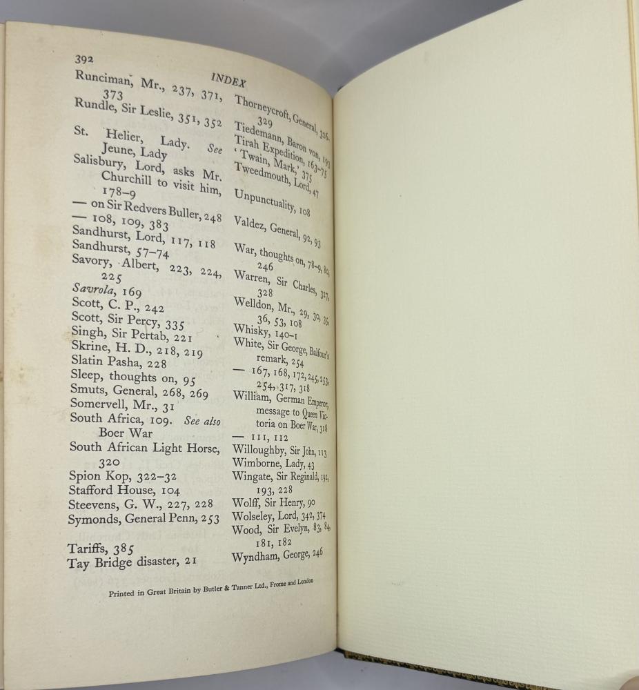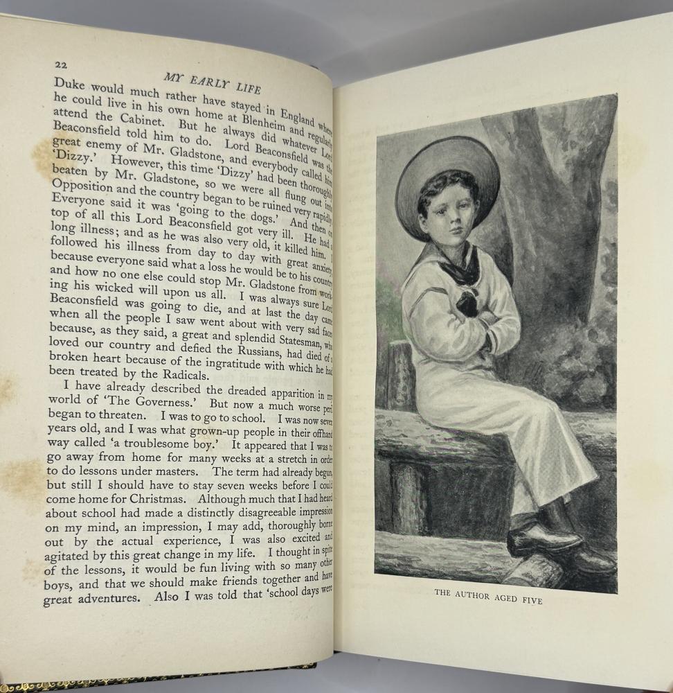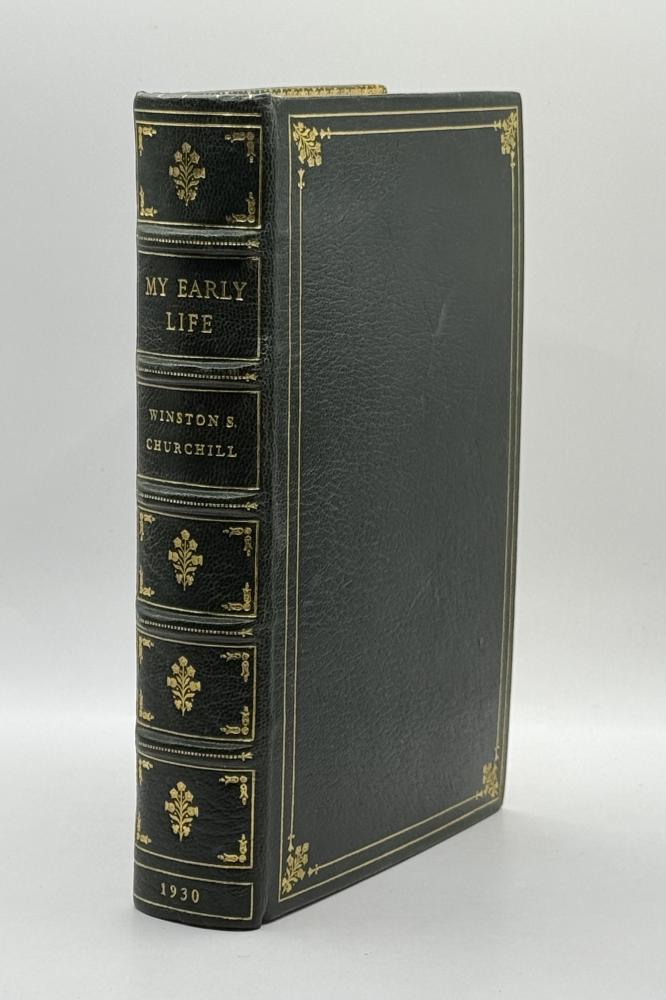 CGS0223 ![]() Click image to enlarge ![]() ![]() ![]() ![]() ![]() ![]() ![]() ![]() ![]() ![]() ![]() ![]() ![]() ![]() ![]() My Early Life a Roving Commission, London, Thornton Butterworth Limited, By the Rt Hon Winston S Churchill. 1930. DESCRIPTION: pagination: 392, with advert leaf before the frontispiece, frontispiece and 25 plates, plus one folding map and one map in text, bound by Zaehnsdorf for Asprey's in full green crushed morocco, sides with double gilt fillet borders with corner floral ornaments, spine floral gilt within gilt compartments and raised bands, date at foot of spine, wide inner gilt floral dentelles, matching green marbled endpapers, all edges gilt. SIZE: 215 x 136mm CONDITION: Minor signs of use only. A near fine copy. £9500.00 Have a Question?You need to be Signed In to ask questions. |