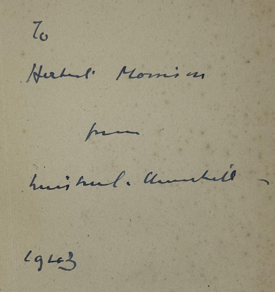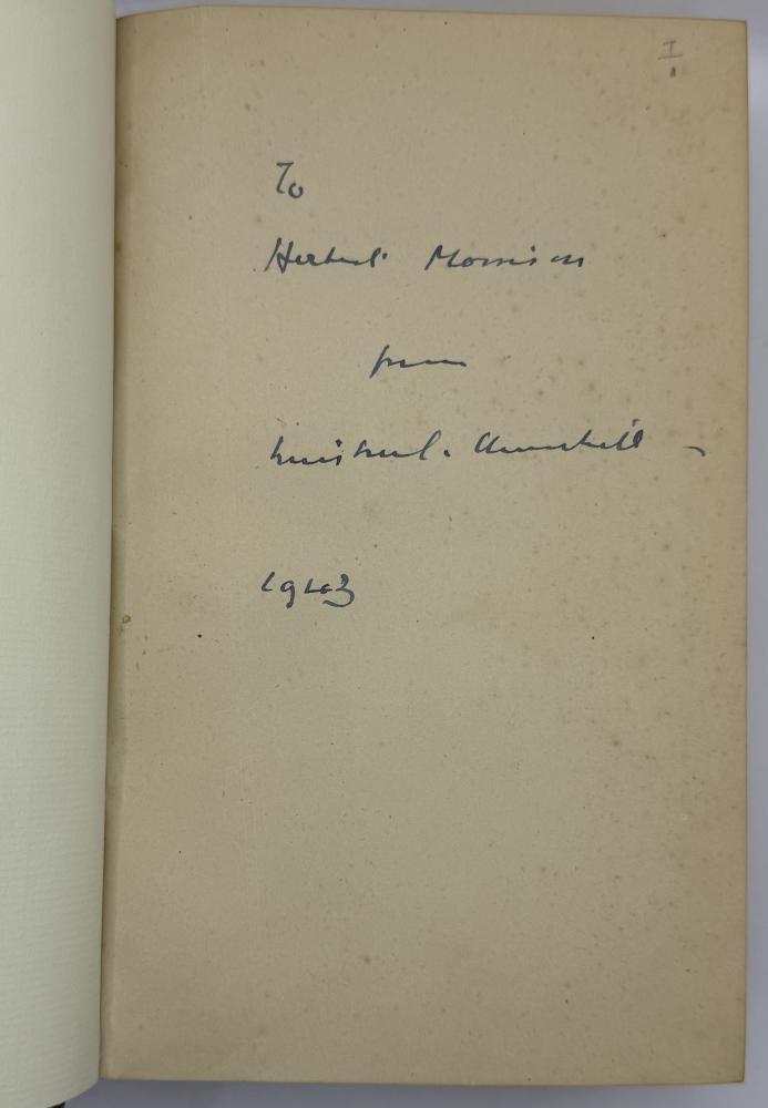 CHURCHILL, Sir Winston - My Early Life - 1943 Inscription to Herbert Morrison