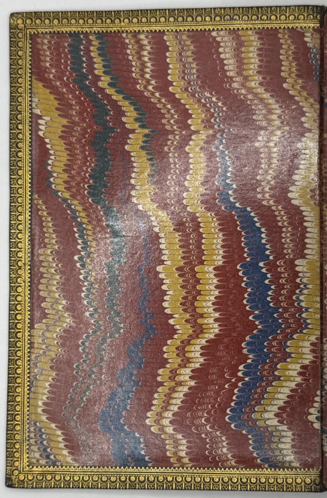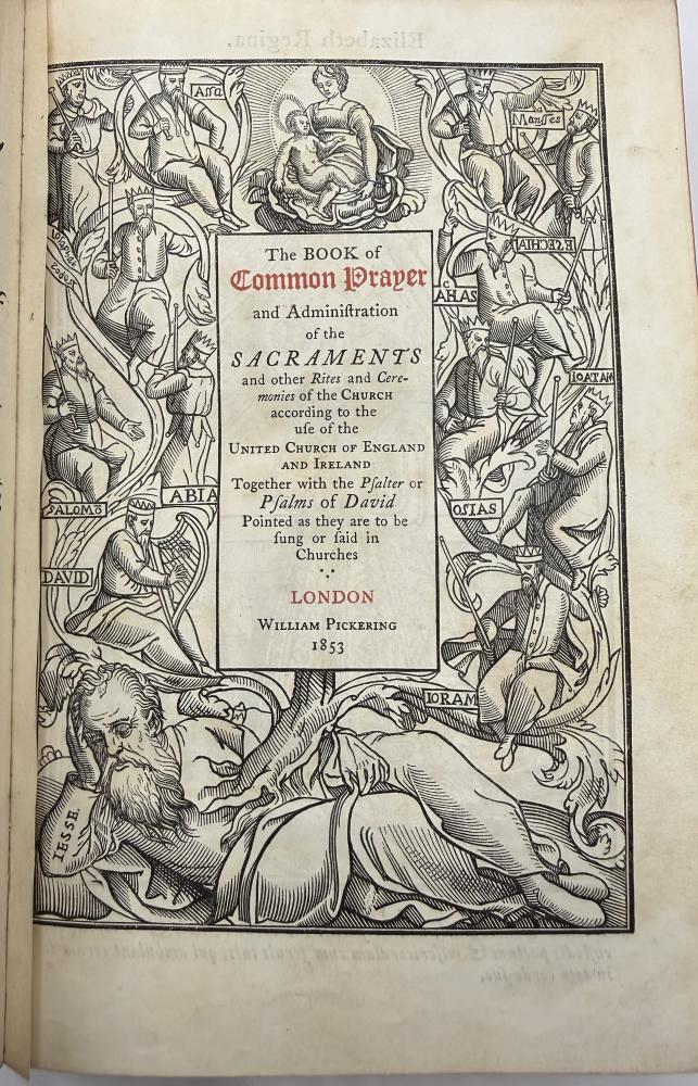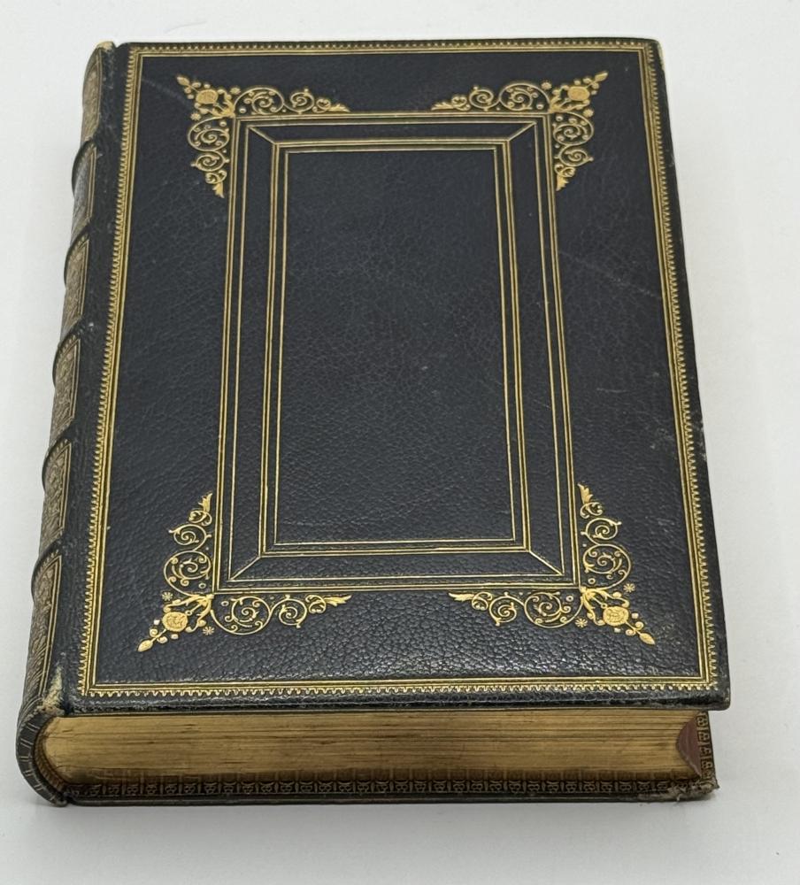 CGS0231 ![]() Click image to enlarge ![]() ![]() ![]() ![]() ![]() ![]() ![]() ![]() The Book of common prayer and administration of the sacraments and other rites and ceremonies of the church according to the use of the United Church of England and Ireland: together with the Psalter or Psalms of David pointed as they are to be sung or said in churches, London William Pickering 1853. DESCRIPTION: Octavo, 360 unnumbered leaves, title page printed in red and black within woodcut border representing the tree of Jesse with portrait of Queen Elizabeth to title verso. Pages of text surrounded by borders engraved on wood by Mary Byfield after designs mostly by Holbein and Durer. Bound in contemporary full dark olive green crushed polished morocco signed J Wright, gilt panelled to sides, the spine richly gilt within raised bands, inner gilt dentelles and marbled endpapers, all edges gilt. SIZE: 185 x 120mm CONDITION: Minor rubbing to the extremities of the binding and slight marking to lower board. A blank leaf facing title page excised and with an early quotation from Dibdin on front free endpaper. Overall a very good to excellent copy throughout. £375.00 Have a Question?You need to be Signed In to ask questions. |