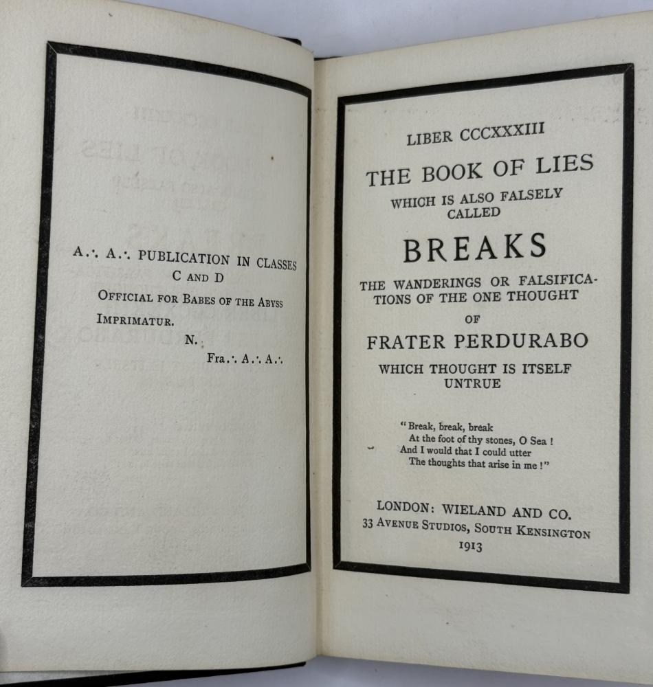 CROWLEY, Aleister - The Book of Lies - First Edition - 1913