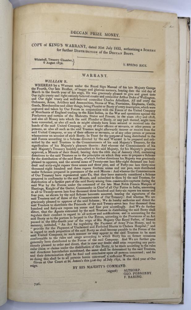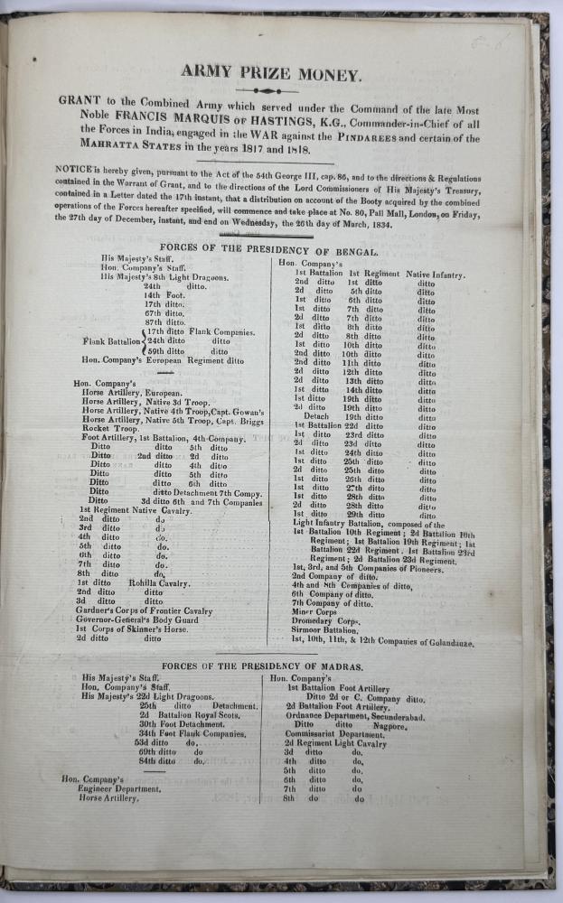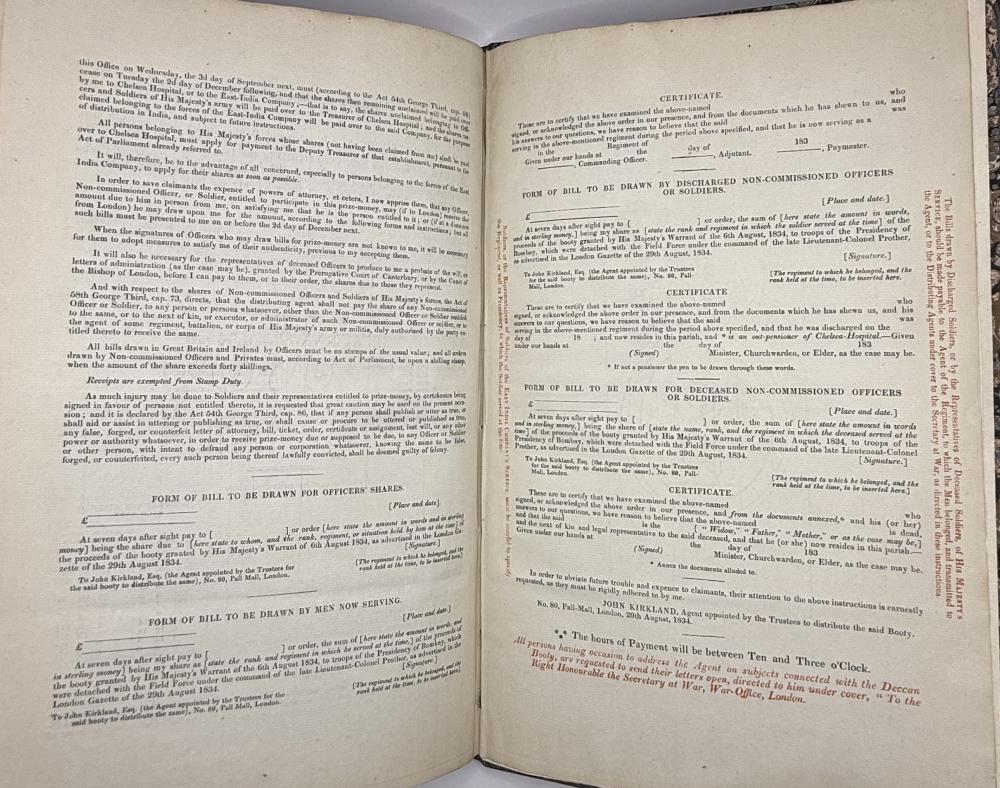 ANGLO-MARATHA WAR - 7 Deccan Prize Money Reports - 1832-1839