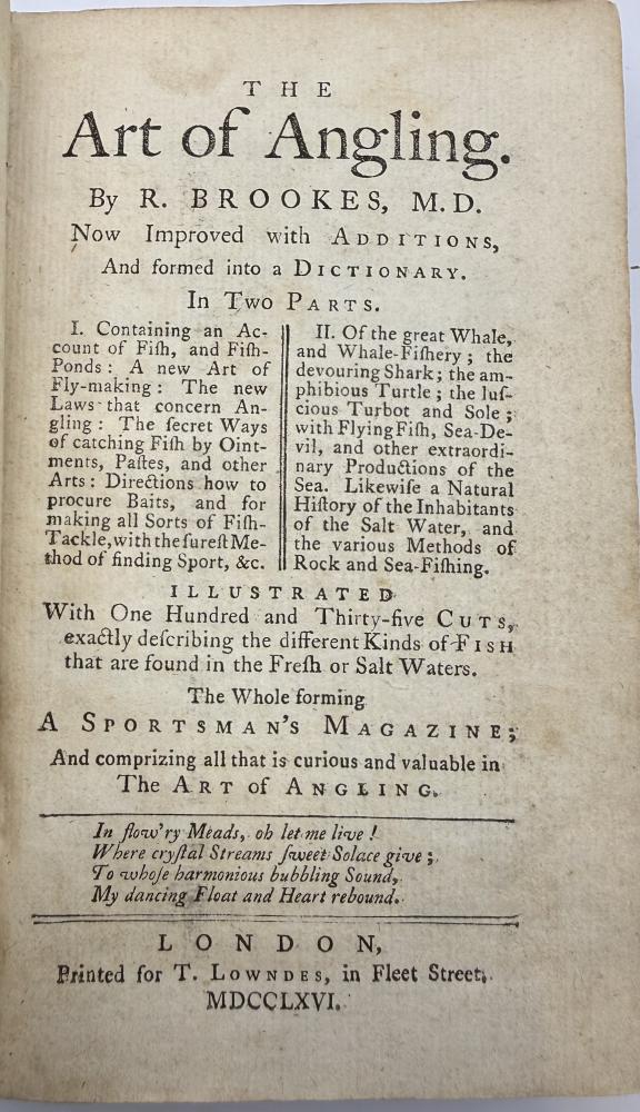 BROOKES, Richard - The Art of Angling - Dictionary - Angling Laws - London -1766