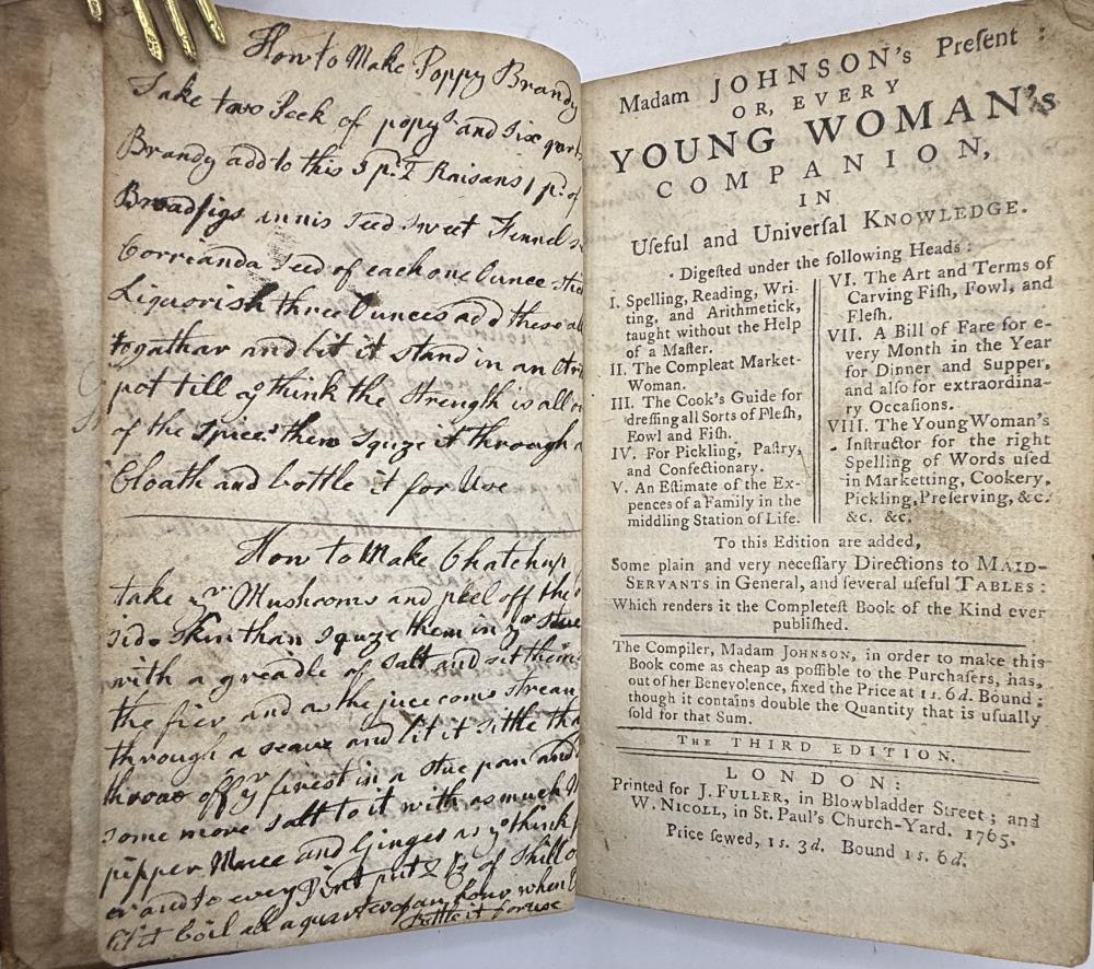 JOHNSON, Mary - Madam Johnson's Present Young Woman's Companion - Cookery 1765