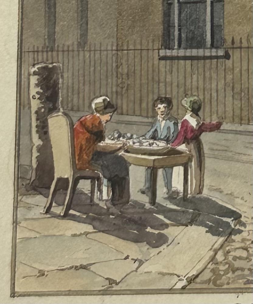 BKN0026 ![]() Click image to enlarge ![]() ![]() ![]() ![]() ![]() ![]() ![]() ![]() An original watercolour view of Pinners Hall, in the City of London, circa 1820, probably after George Shepherd's original watercolour in the City of London collections at the Guildhall. DESCRIPTION: Watercolour in colour, captioned in early pen flourish 'Pinners Hall.' The early London building in Old Broad Street in the City of London was originally home to the Company of Pinners, later used for a variety of uses, including public meetings, especially of religious, non-conformist type during the 18th Century. It was finally demolished in 1798, apparently with no visual record. SIZE: Image: 221 x 145mm CONDITION: Small corner tear where removed from mounting, not affecting the image, in fine bright state. £325.00 Have a Question?You need to be Signed In to ask questions. |