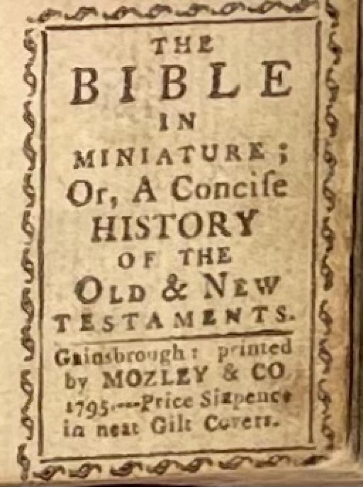 BIBLE in Miniature - Illustrated History - Published by Mozley 1795 First Edition