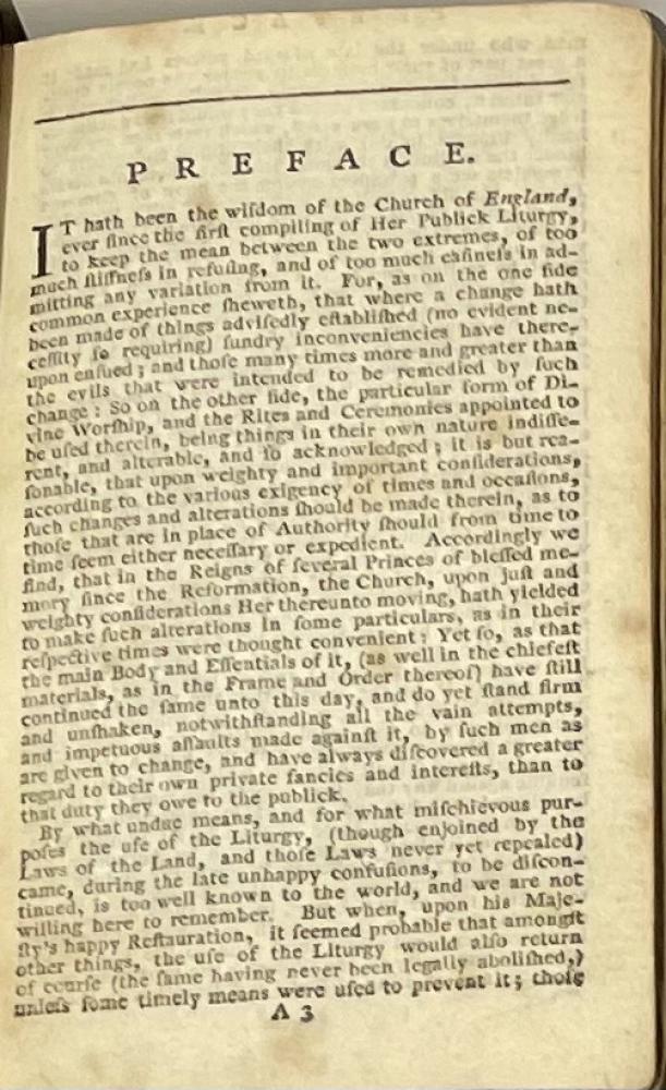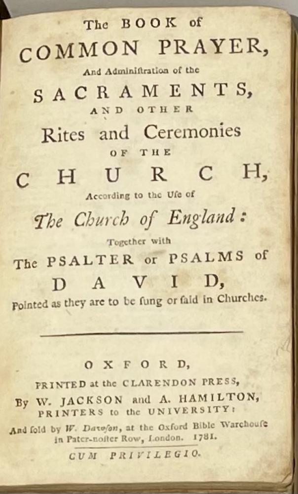 CGS0058 ![]() Click image to enlarge ![]() ![]() ![]() ![]() ![]() ![]() ![]() ![]() ![]() ![]() A possibly unrecorded edition of The Book of Common Prayer... with the Psalter of Psalms of David, Oxford, printed at the Clarendon Press by W Jackson and A Hamilton… and sold by D Dawson at the Oxford Bible Warehouse in Pater-noster Row, London. 1781. DESCRIPTION: Full Title: The Book of Common Prayer and Administration of the Sacraments and Other Rights and Ceremonies of the Church According to the Use of the Church of England: together with the Psalter of Psalms of David, Printed as they are to be Sung or Said in Churches. SIZE: 60mm x 100mm CONDITION: A little rubbed, one lower corner a little worn, a little worn at head of spine else in very good state. Text hardly at all soiled and with 1786 ownership of ‘Mary Jane Whitelock’ to blank at front. £375.00 Have a Question?You need to be Signed In to ask questions. |